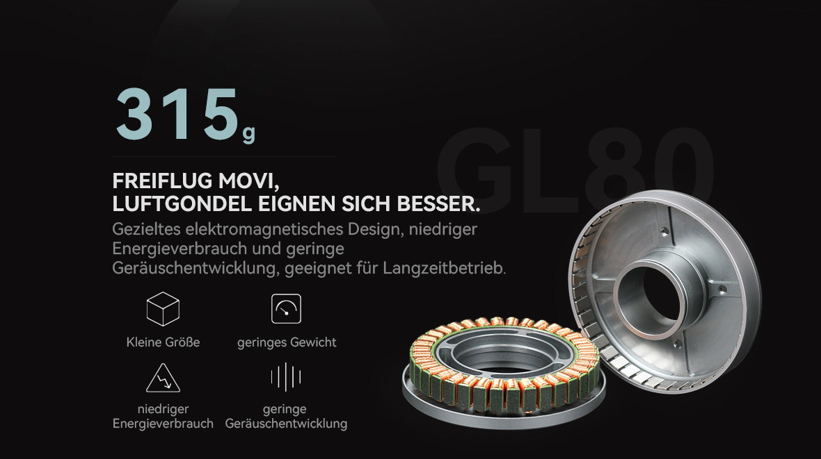 | GL Gimbal-Motoren | GL80 KV30 | 24 | 48 | 1 | 2.8 | 450 | 2.9 | 8.2 | 650 | 1800 | 1100 | 21 | 312 | Ф87*22.3 |