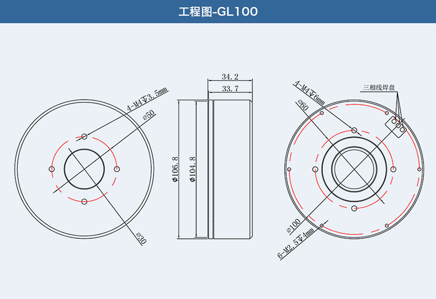 GL100 KV10云台电机采用大中空设计,中空30mm,方便穿插信号线和电源线,齿槽转矩低,控制细腻,方便与控制系统进行交互。