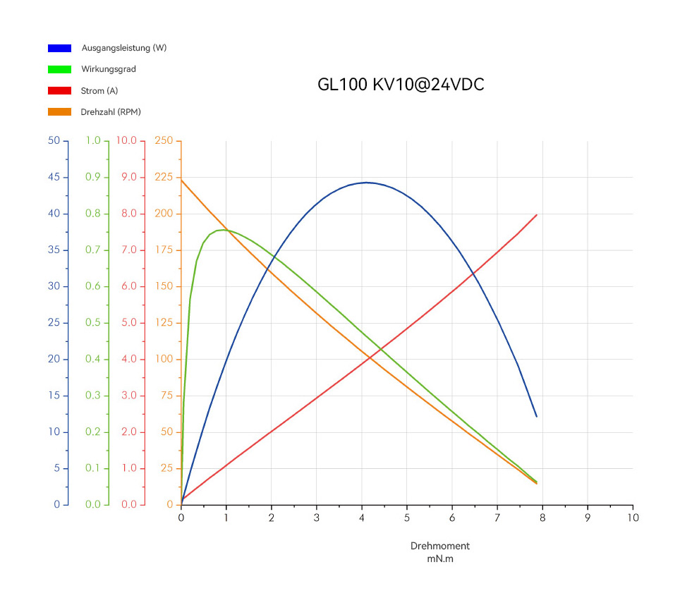 | Drehmoment konstant Kt (Nm/A) | 1.030 | Maximale Drehmomentdichte (Nm/kg) | 11.03 |