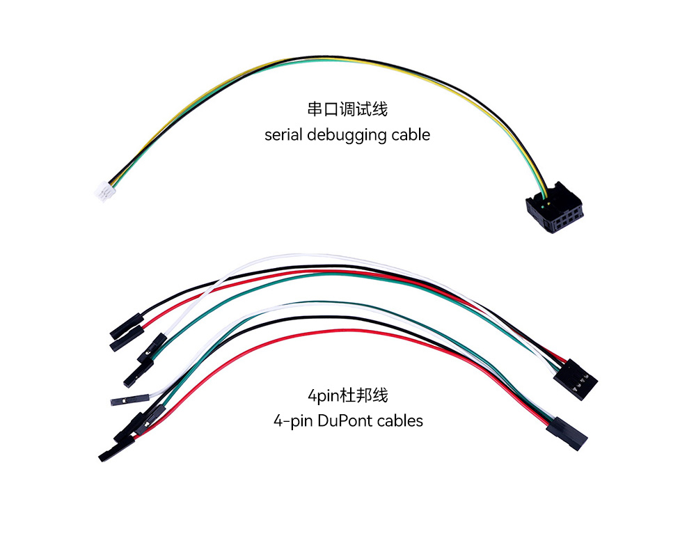 Wiring Description: The package includes 2*4-pin DuPont cables, 1*serial debugging cable