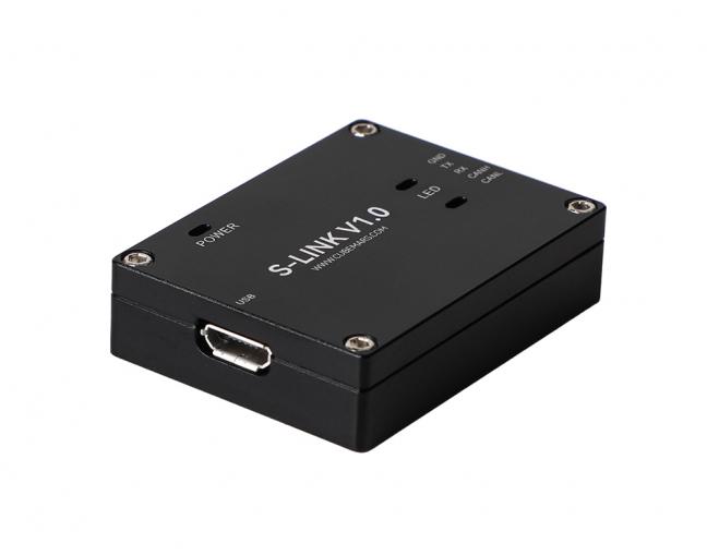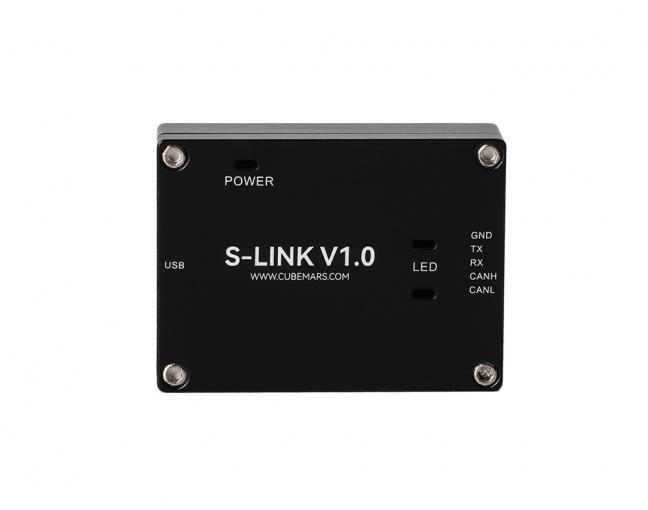 The CubeMars S-Link V1.0 is a communication interface device designed to work with the GL II series gimbal motors, enabling data exchange and real-time monitoring of the motor system's operational status. It supports user requirements such as parameter tuning and system debugging.